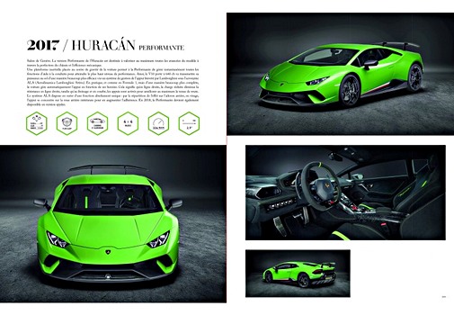 The book opens with the latest successful events, exploring the technological leadership of the Brand, which is famous for its V12 and V10 engines (the key to the outstanding performance of the current Aventador and Huracán), but also for its new departments for processing of carbon fibres.