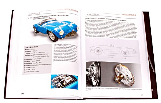 Contents include: The Bugatti Heritage 1676-2008; List of inventions, designs, ideas and follies in alphabetical order; Molsheim Electrics; Horses and Carriages; Machine Tool Patents; Aeronautics; Railways; Marine; Automotive.